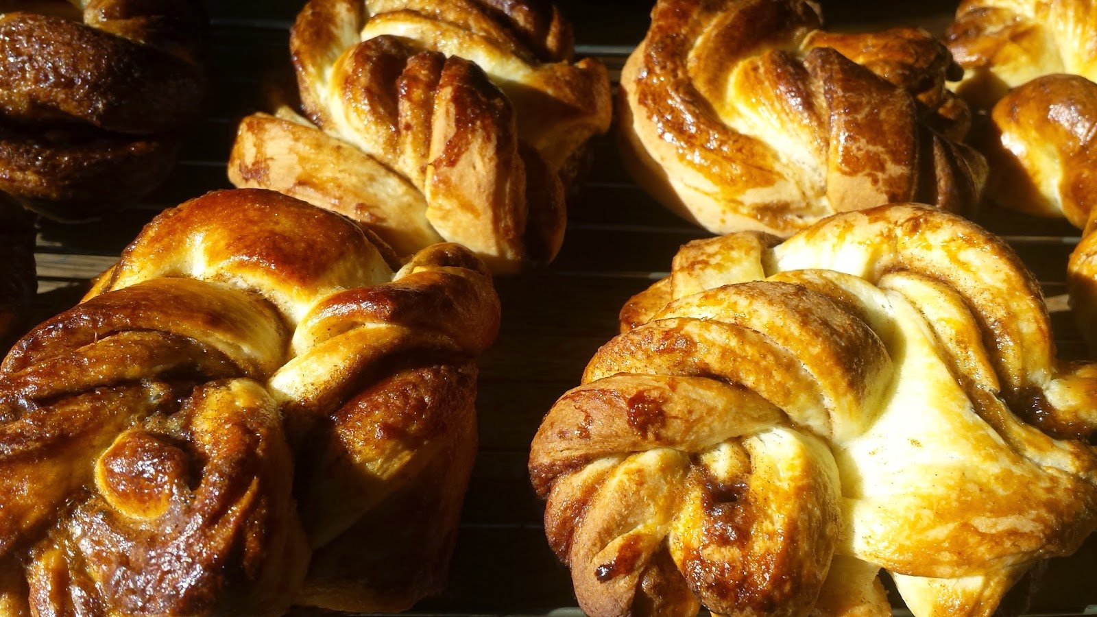 At weekends I quite often make a sweet yeast dough after dinner. This takes ten minutes all in all. The dough rises overnight in the fridge. In the morning it can be turned into a plaited bread, raisin rolls or cinnamon twists within an hour of getting up.